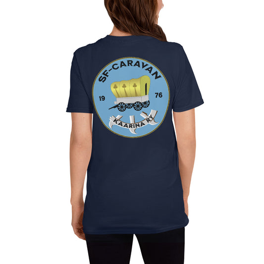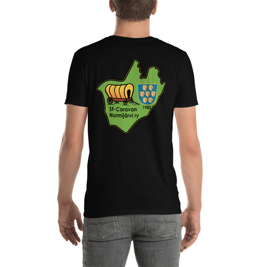 T-paita SF-Caravan Kaarina ry:n logolla ja personoinnilla
