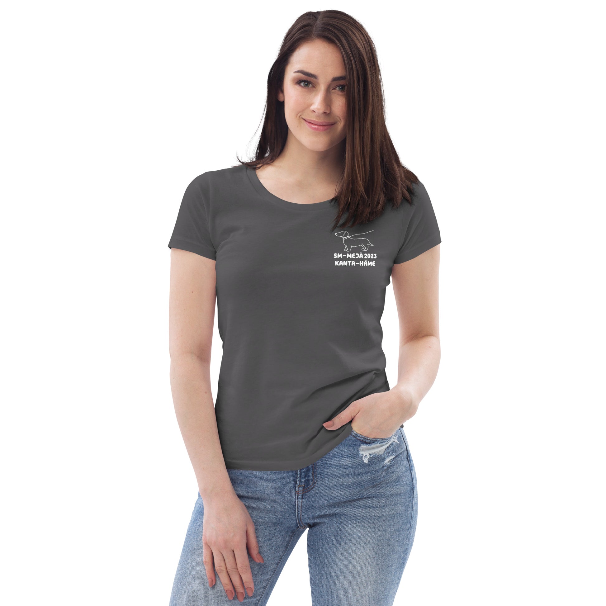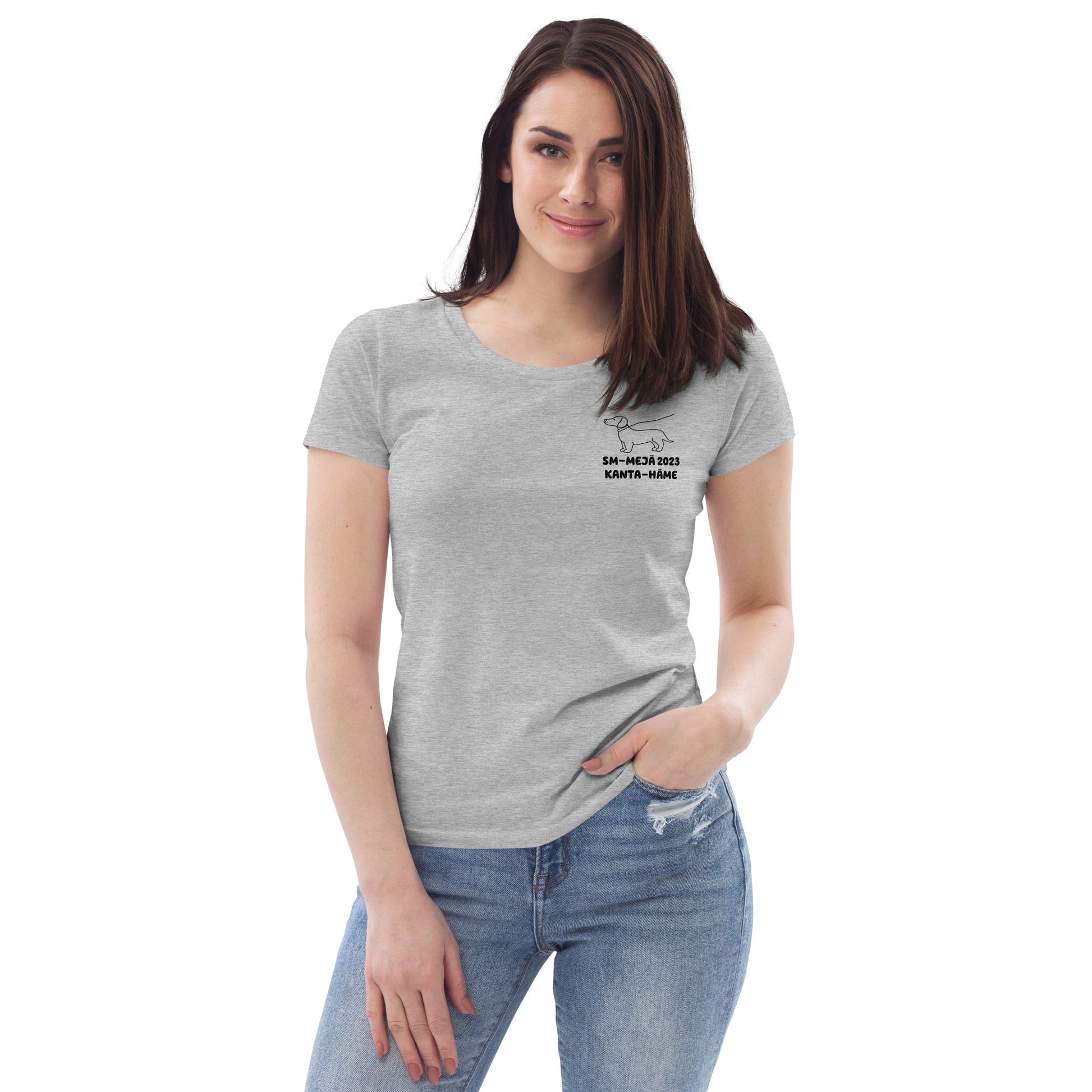 Miellyttävän tuntuinen, rento ja niin pehmeä - tämä ekologinen naisten t-paita on kohta uusi suosikkisi. Tilaa tästä ympäristöystävällinen t-paita SM-MEJÄ 2023logolla!